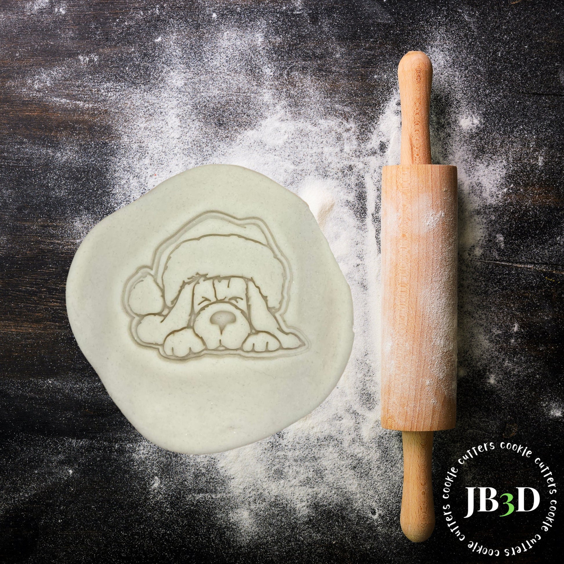 CHRISTMAS DOG in Santa Hat Cookie Cutter & Stamp