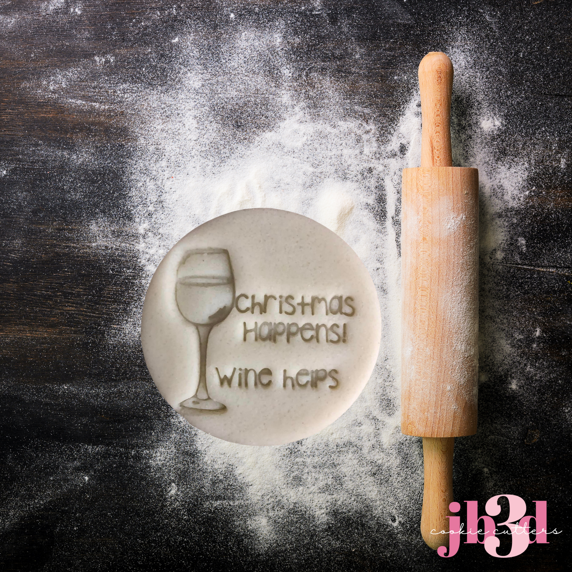 Chritsmas happens - Wine Helps. 70mm round Embosser