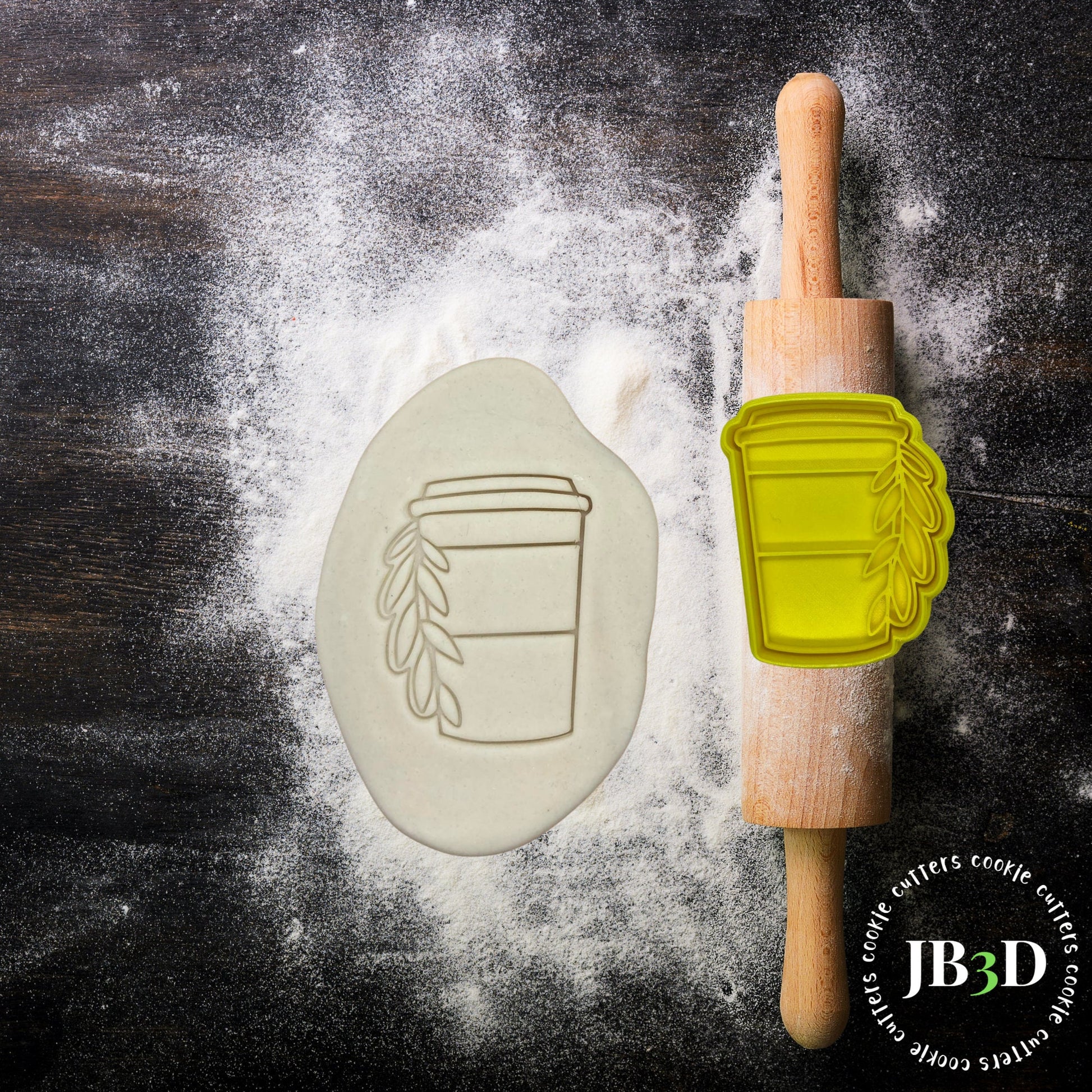 LEAVES Coffee Cup Cookie Cutter and stamp